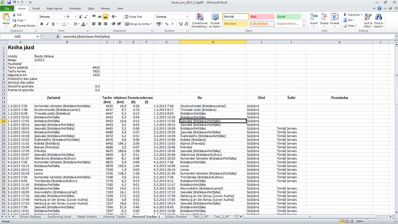 Jednotlivé jazdy môžete upraviť, exportovať do formátu MS Excel a použiť na legislatívne účely.
